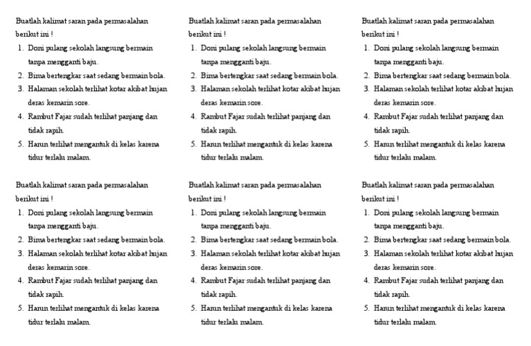 Dalam kehidupan sehari-hari, kita seringkali berinteraksi dengan orang lain dan memberikan atau menerima saran. Kemampuan untuk memberikan saran yang baik dan memahami saran yang diberikan orang lain adalah keterampilan penting yang perlu dikembangkan sejak dini. Di kelas 3, siswa mulai diperkenalkan dengan konsep saran melalui berbagai kegiatan pembelajaran. Artikel ini akan membahas secara mendalam tentang contoh soal saran yang relevan untuk siswa kelas 3, lengkap dengan pembahasan dan tips untuk membantu mereka memahami konsep ini dengan lebih baik.
